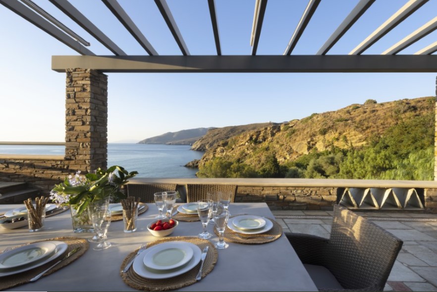 Ένα αποκλειστικό σύμπλεγμα παραθαλάσσιων βιλών στα Πίσω Γυάλια και λίγα λεπτά από την Χώρα της Άνδρου. Με φόντο το Αιγαίο, οι βίλλες συνδυάζουν μοναδική αρχιτεκτονική και επιμελημένη διακόσμηση με την διαχρονική γοητεία ενός κυκλαδίτικου νησιού. Ξυπνάτε μπροστά στην μαγευτική θέα της θάλασσας και απολαμβάνετε το φως της Άνδρου στις μεγάλες ηλιόλουστες βεράντες του συγκροτήματος.